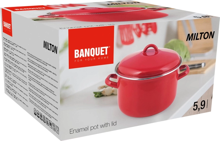 De elegante rode MILTON-pan met deksel combineert de klassieke uitstraling van emaille met praktische eigenschappen voor dagelijks koken. Dankzij de inhoud van 5,9 l bereidt u gemakkelijk grotere porties soepen, bouillons of stoofgerechten. De crèmekleurige binnenkant vergemakkelijkt de controle over de gaarheid en het reinigen.