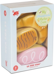 Inclusief klassieke soorten broodjes en zoetigheden in een compacte krat – de perfecte aanvulling voor kinderkeukens en marktstalletjes.