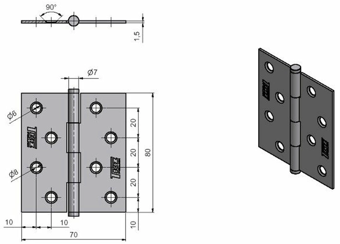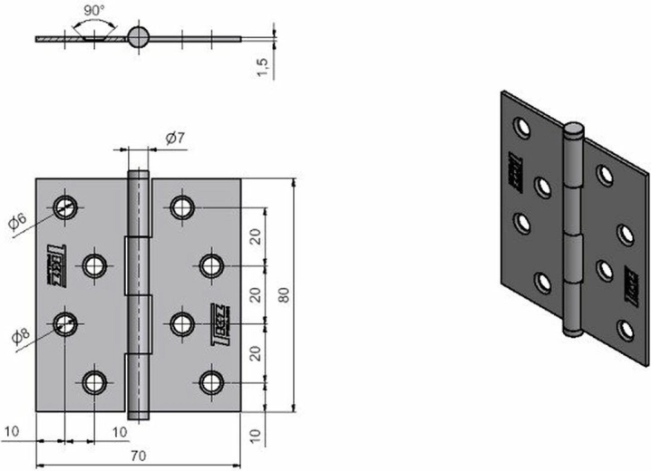 Betrouwbaar hengsel voor montage in het deurblad met een lengte van 80 mm, ideaal voor zowel interieur- als technische toepassingen. Het verzinkte oppervlak zorgt voor corrosiebestendigheid en langdurige functionaliteit, ook bij frequent gebruik.