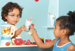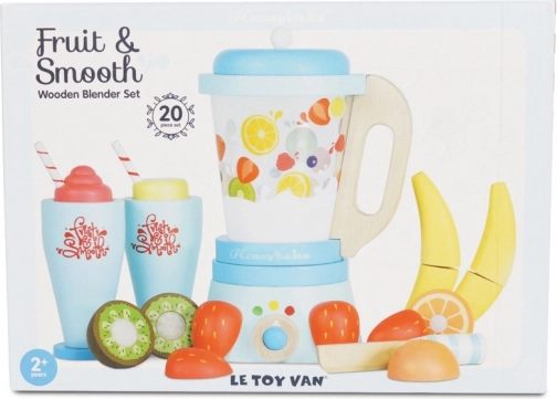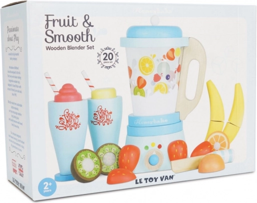 Mix een gezonde portie speelplezier voor kinderen met de houten smoothieblender van LE TOY VAN. De set bevat een klassieke blender met afneembare kan, 6 stuks snijfruit met klittenband, een houten mesje en 2 glazen met rietjes. Gemaakt van FSC-gecertificeerd hout, met de hand afgewerkt met niet-giftige verf op waterbasis en bekroond om kwaliteit en speelwaarde.