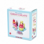 De speelset Le Toy Van Carlo’s Gelato brengt kinderen eindeloos veel plezier en verbeelding. Bevat hoorntjes en een bekertje, afneembare bolletjes, twee sauzen en sprinkels, plus een lepeltje. Gemaakt van duurzaam FSC-hout, met de hand nabeschilderd met niet-giftige verf op waterbasis en stimuleert fijne motoriek, cognitieve vaardigheden en rollenspel.