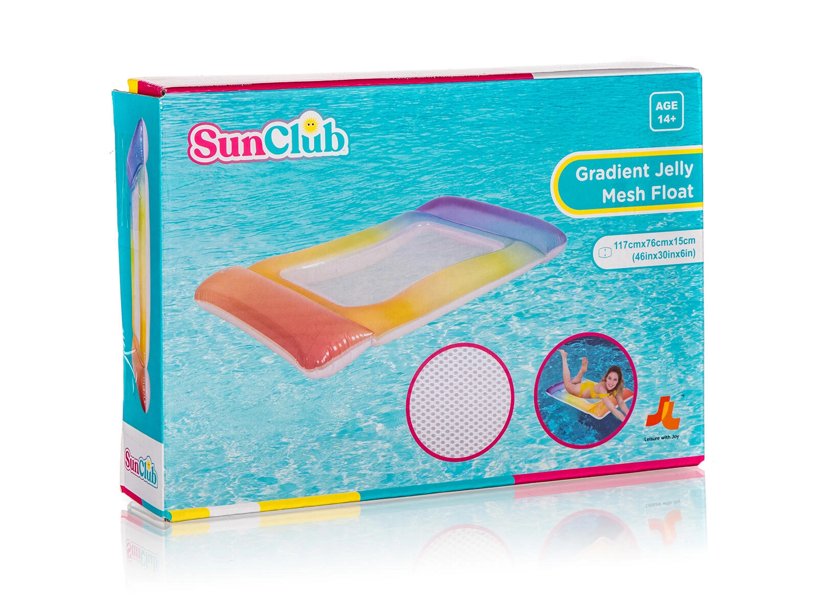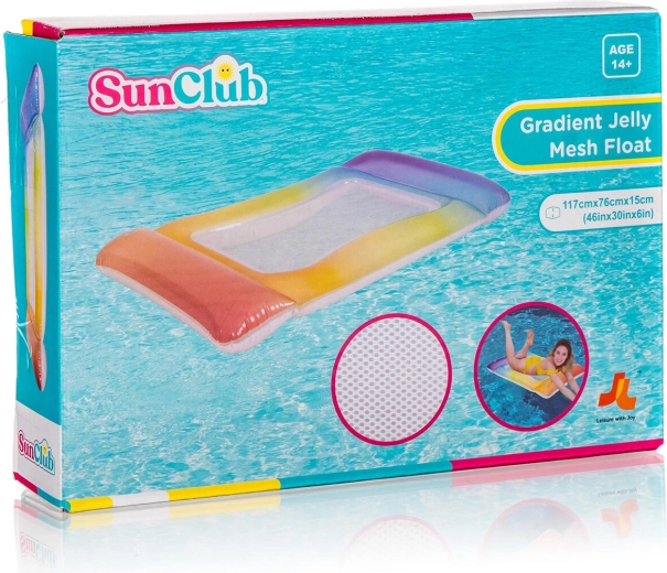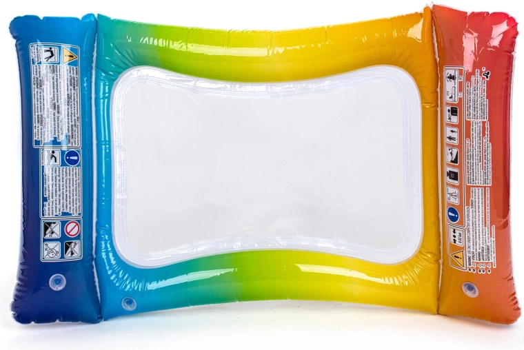 Geniet van zomerse ontspanning op het water met dit comfortabele opblaasbare ligbed met net. Dankzij de afmetingen van 117 × 76 cm en een draagvermogen van 80 kg biedt het stabiele rust, terwijl het ademende net aangenaam verkoelt. Het duurzame vinylmateriaal en het regenboogdesign garanderen stijl en een lange levensduur.