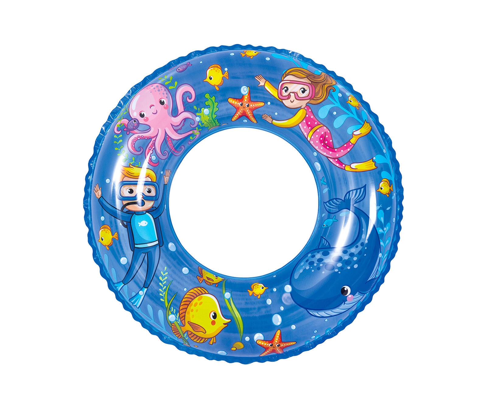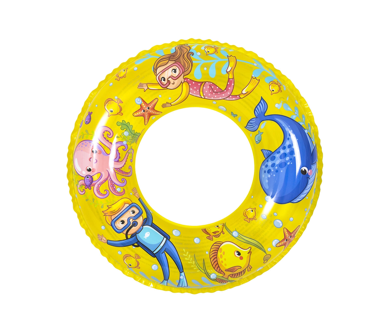 Motieven van zeedieren, duikers en kleurrijke visjes maken van de ring een aantrekkelijk hulpmiddel dat kinderen motiveert om in het water te bewegen. Kies uit 2 speelse kleuren – geel en blauw en gun kinderen plezier in het zwemmen.