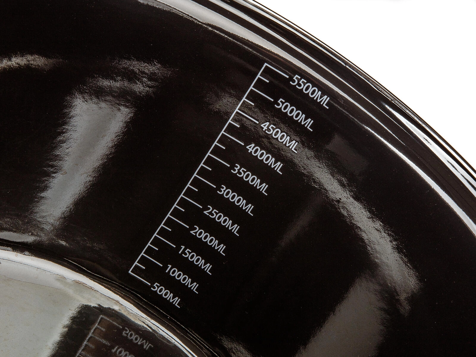 De geïntegreerde schaal aan de binnenkant van de pan maakt het afmeten van vloeistoffen eenvoudig en versnelt de bereiding van recepten.