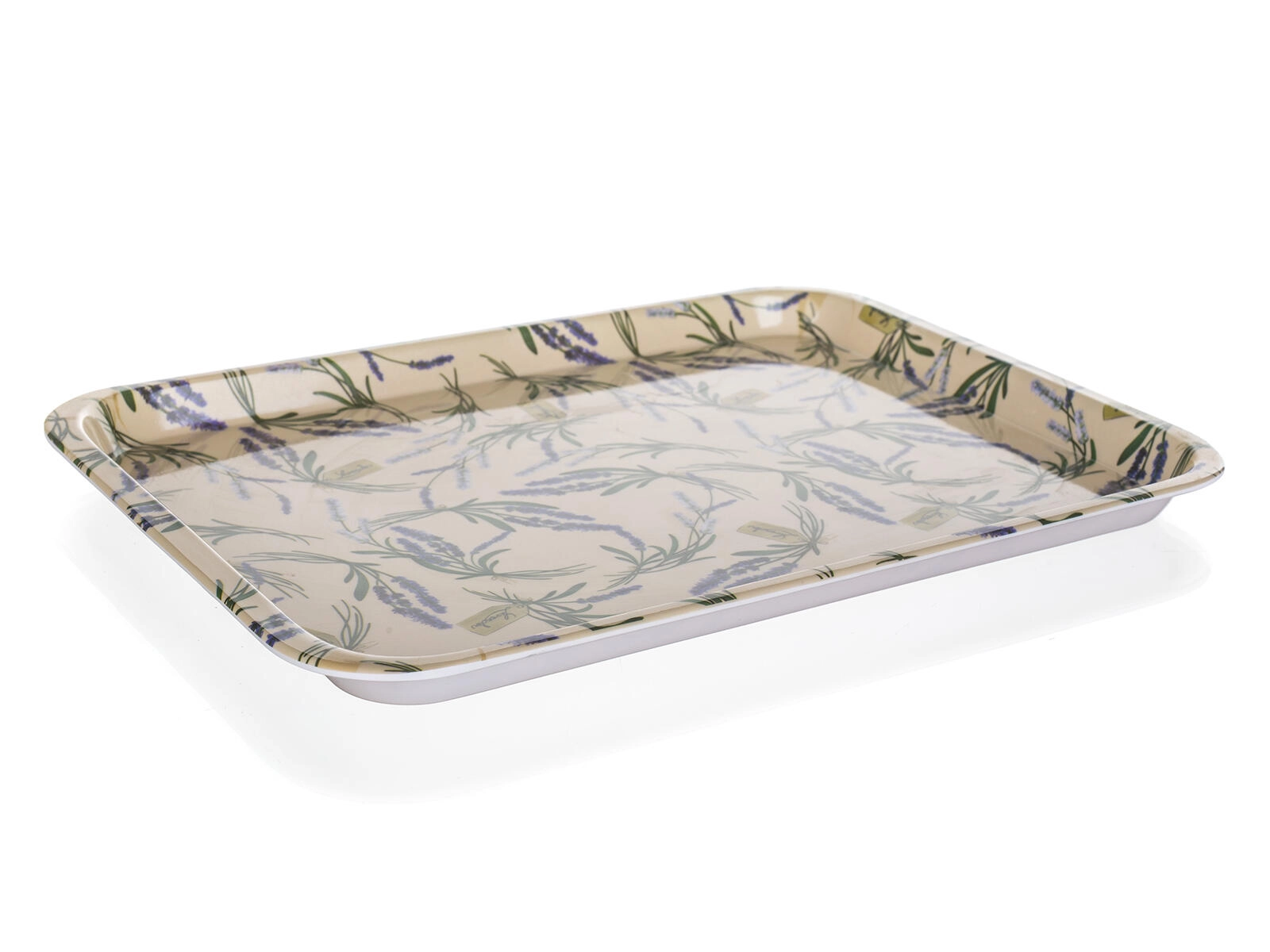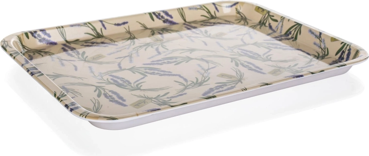 Stijlvol dienblad met het motief LAVENDER met afmetingen 30 × 21,5 cm van duurzaam melamine maakt het serveren van dranken en gerechten eenvoudiger. Het is licht, makkelijk te hanteren en kan ruwer gebruik aan. Niet geschikt voor de vaatwasser.