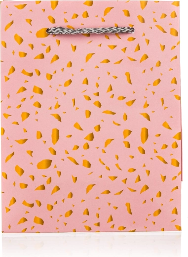 Geef elk cadeau stijl met deze elegante roze cadeautas met gouden details. Ideaal voor kleine verrassingen, cosmetica of kleine voorwerpen. Dankzij de kwalitatieve afwerking en de textiele handgreep oogt de tas representatief en is hij tegelijk praktisch.