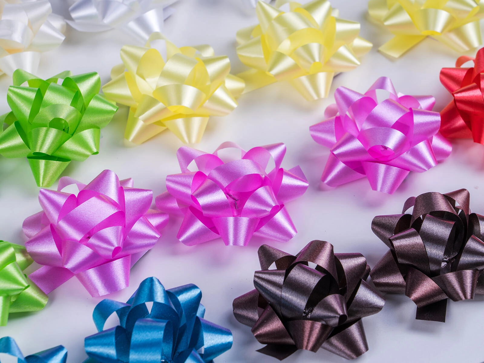Een mix van kleuren van wit en zilver tot rood, blauw en roze geeft elk cadeau een elegante sparkle.