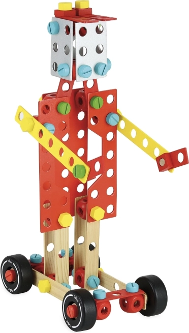 De houten bouwset Vilac Super Batibloc is een ideale keuze voor jonge bouwers. Met meer dan 100 kleurrijke onderdelen, schroeven en verbindingsstukken kunnen de meest uiteenlopende modellen worden gebouwd – van voertuigen tot eenvoudige figuurtjes. De meegeleverde handleiding met 6 projecten helpt bij de eerste pogingen en stimuleert vervolgens de eigen creatieve ontwerpen.