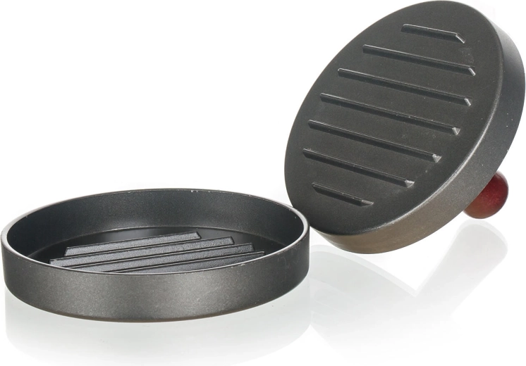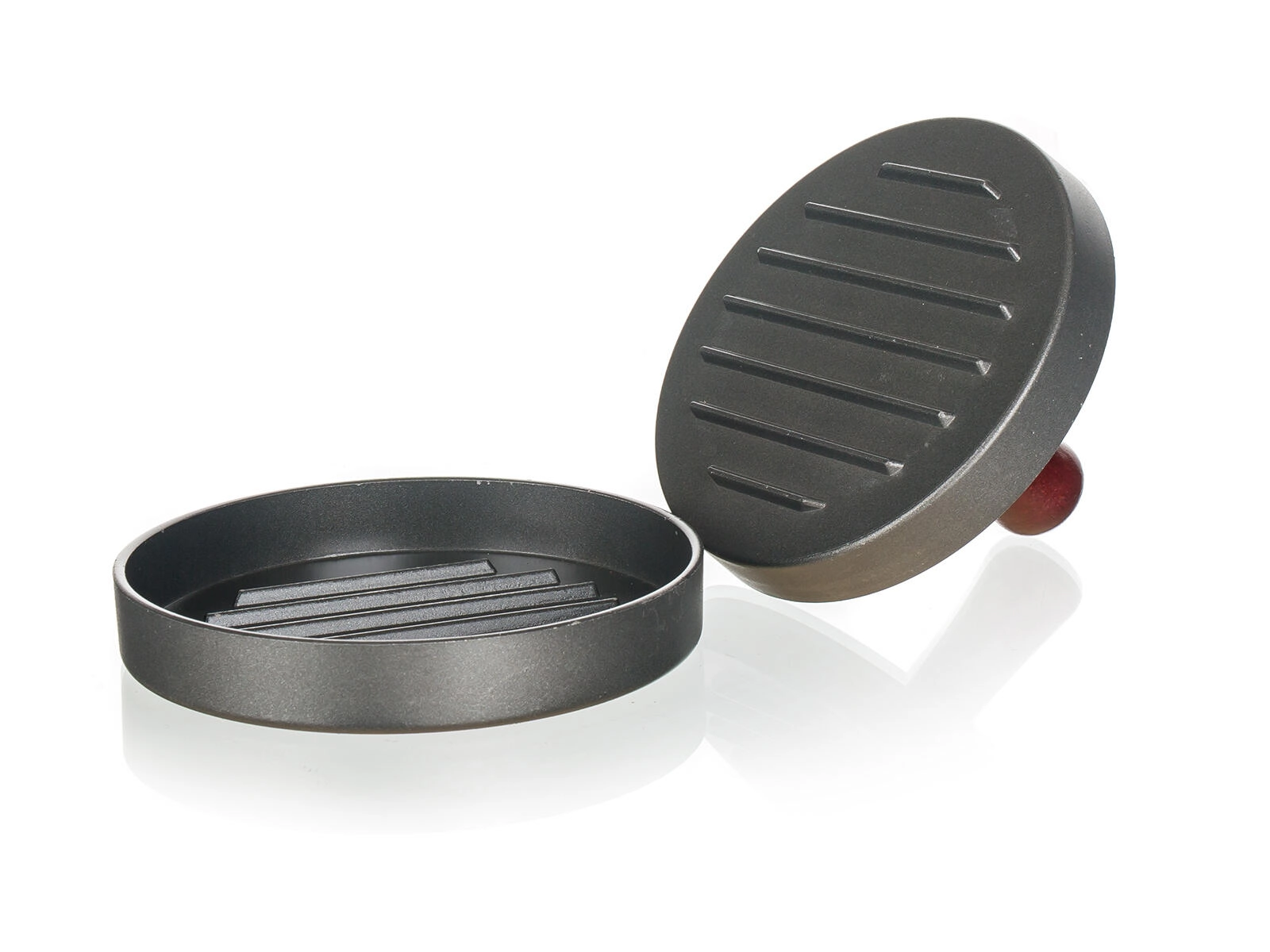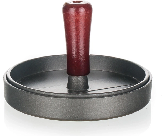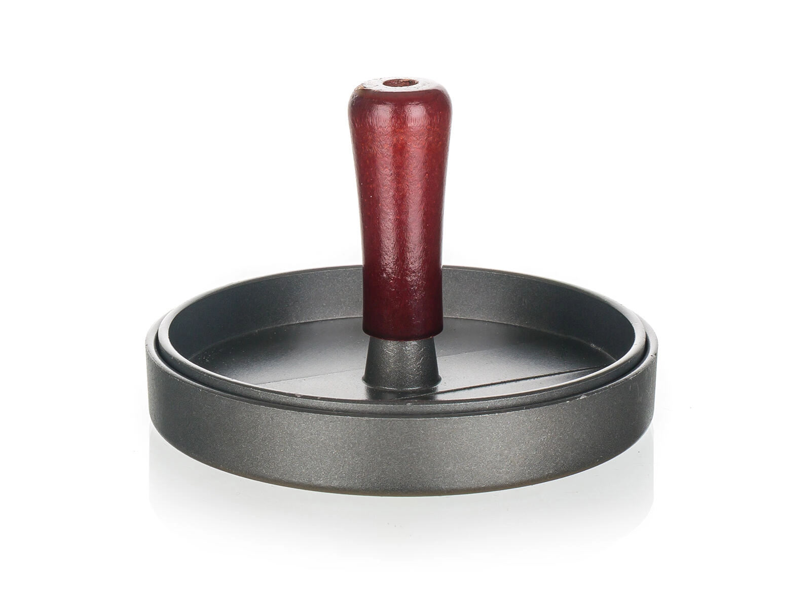 Vorm perfect ronde en gelijkmatige burgers in enkele seconden. De pers van gegoten aluminium met anti-aanbaklaag bespaart tijd en moeite, voorkomt dat vlees blijft plakken en maakt het uitnemen van de schijf eenvoudig. Het ergonomische houten handvat ligt comfortabel in de hand en biedt gecontroleerde druk voor nauwkeurig persen.