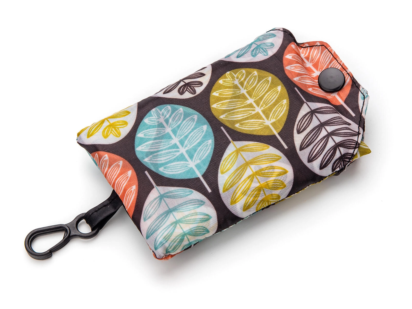 Vouw de tas op tot een klein etui met drukknoop en clip – ideaal voor aan je sleutels of in je handtas. Altijd klaar wanneer je haar nodig hebt.
