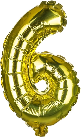 Stijlvolle folieballon in de vorm van het cijfer 6 met een hoogte van ca. 30 cm in een elegante mix van goud en zilver. Inclusief een papieren rietje voor eenvoudig opblazen en een touwtje om op te hangen. Ideale decoratie voor verjaardagen, jubilea en feestjes, op te blazen met lucht.