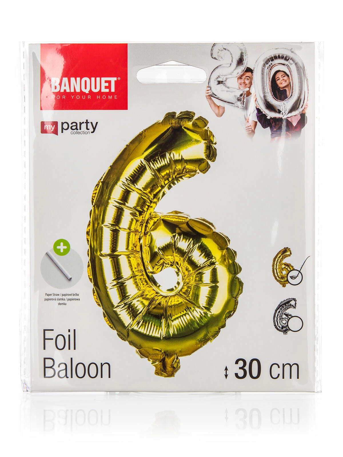 Geef je feest extra glans en stijl. De folieballon met cijfer 6 in goud en zilver is een perfecte keuze voor verjaardagen, jubilea en bedrijfsfeesten. Dankzij de praktische accessoires is hij in een handomdraai klaar en creëer je een opvallende partydecoratie.