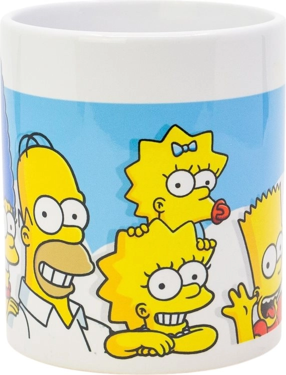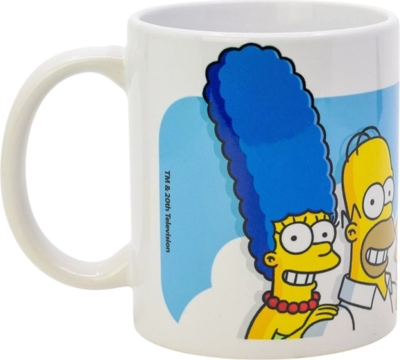 Stijlvolle keramische mok met een motief van The Simpsons en een subtiel patroon van wolkjes brengt een goed humeur in elke dag. Dankzij het volume van 325 ml is hij ideaal voor koffie, thee en warme chocolademelk. Wordt geleverd in een cadeaudoos, dus perfect als cadeau en voor dagelijks gebruik.