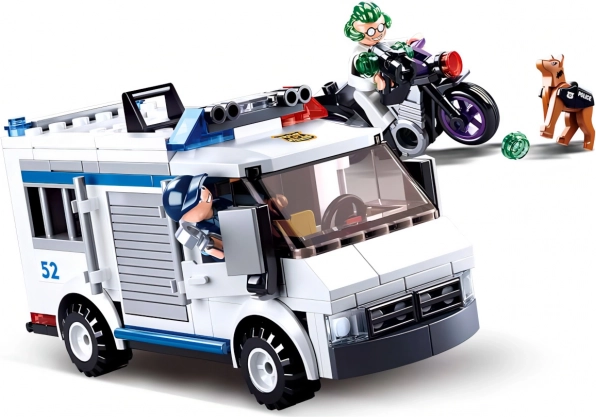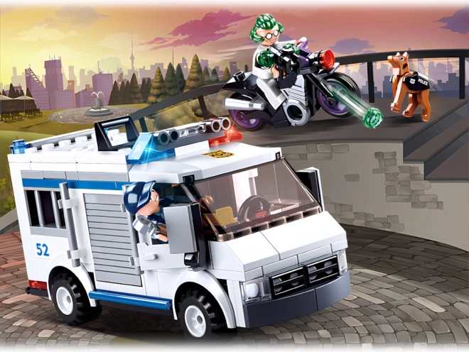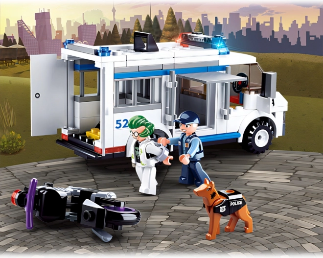 De actievolle bouwset van Sluban voor kinderen vanaf 6 jaar biedt een spannende politieachtervolging met een gevangenisbus, motor, twee figuren en een politiehond. Bevat 177 onderdelen, 2 minifiguren met beweegbare delen en is compatibel met andere bouwsets. Een geweldige keuze voor creatief spel en het ontwikkelen van de fijne motoriek.