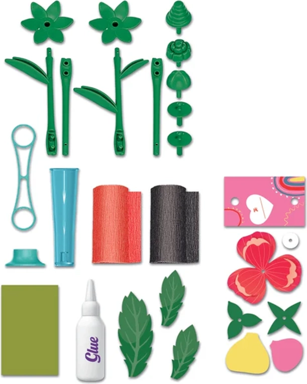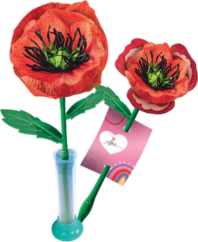 Creatieve set voor het maken van twee bloemen, waarmee kinderen hun eigen klaprozen kunnen samenstellen, inkleuren en versieren. De set bevat stelen, bloembladen om in te kleuren, vouwblaadjes en bloemhouders en ook een cadeaukaartje met houder. Ideaal voor de ontwikkeling van verbeeldingskracht, fijne motoriek en creativiteit.