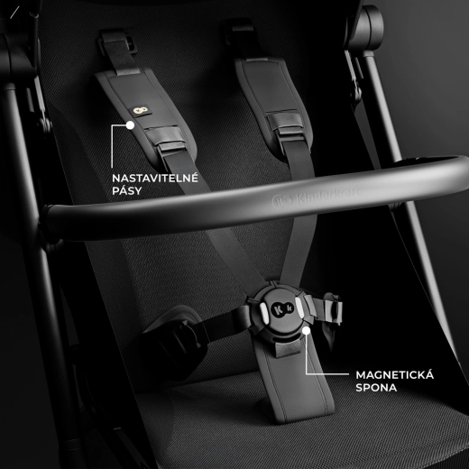 Verstelling van zitten tot volledig liggen en een verstelbare beensteun bieden kinderen kwalitatieve rust, ook tijdens langere uitstapjes. Magnetische 5-puntsgordels met snel sluiten en een draaibare, aan beide zijden afneembare veiligheidsbeugel vergemakkelijken het dagelijkse gebruik. De elegante afwerking met details van eco-leer benadrukt de premium uitstraling, terwijl de grote mand en de optie om een bekerhouder toe te voegen (los verkrijgbaar) het gemak voor ouders vergroten.
