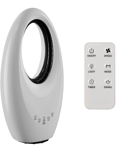 Geniet van comfortabel koelen met een ventilator die elegant bladloos design, hoge veiligheid en eenvoudige bediening combineert. De stille werking is perfect om te werken en te slapen, terwijl de compacte afmetingen zowel op tafel als op een dressoir passen.