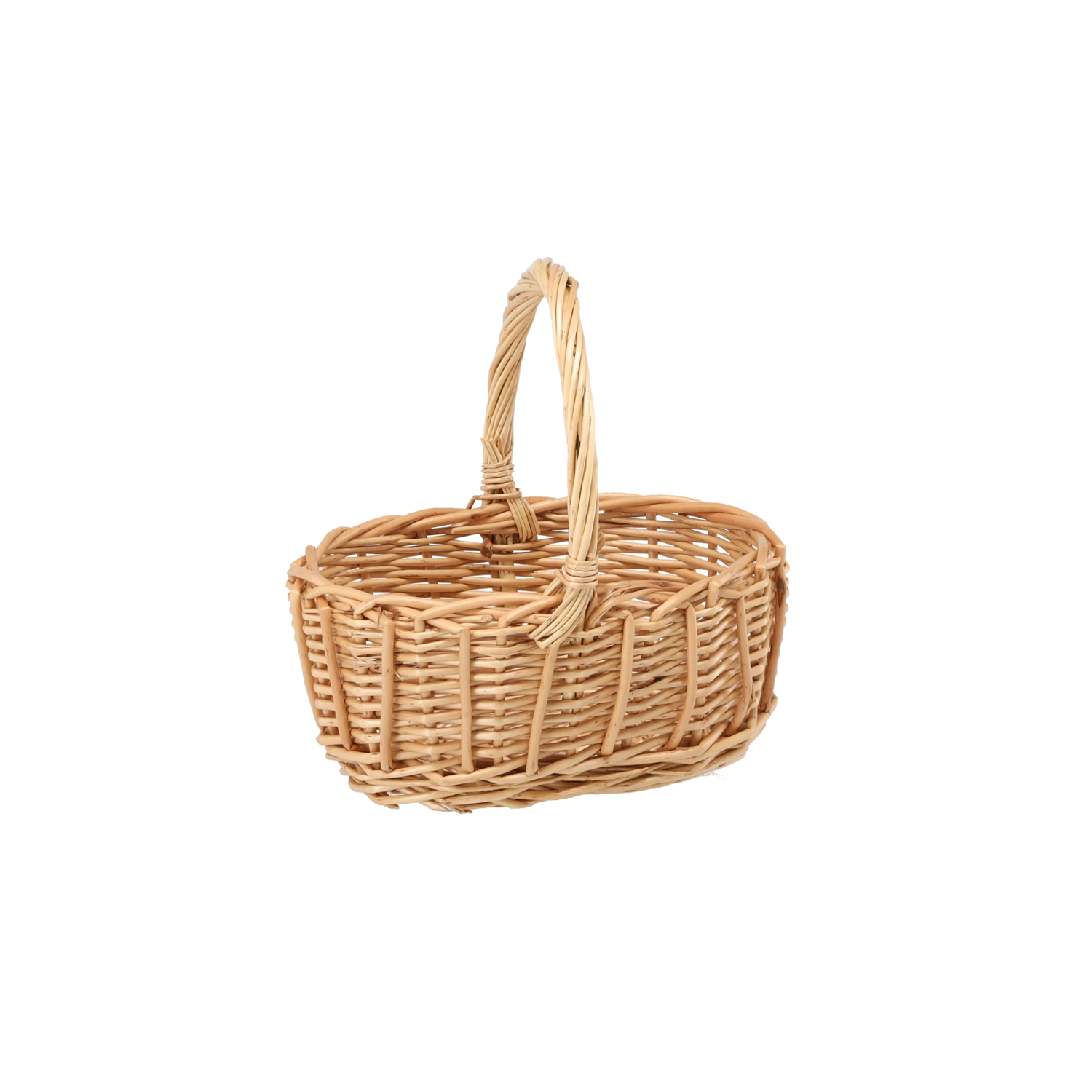 Ontdek het gemak en de charme van natuurlijke materialen. Deze ovale rieten mand is met de hand gevlochten van hoogwaardig riet en is daardoor stevig, duurzaam en licht. Perfect voor kleine boodschappen, het oogsten van fruit en groenten, het opbergen van huishoudelijke benodigdheden of als stijlvolle decoratie voor zowel binnen als op het terras.