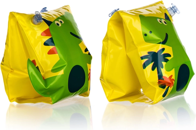 Ondersteun de eerste zwemstapjes van je kinderen met kleurrijke bandjes met dinosaurus. Dankzij twee opblaasbare kamers en duurzaam vinyl bieden ze stabiele drijfkracht en veiliger bewegen in het water. Het opvallende design vergroot de zichtbaarheid en motiveert kinderen om met plezier te leren zwemmen.