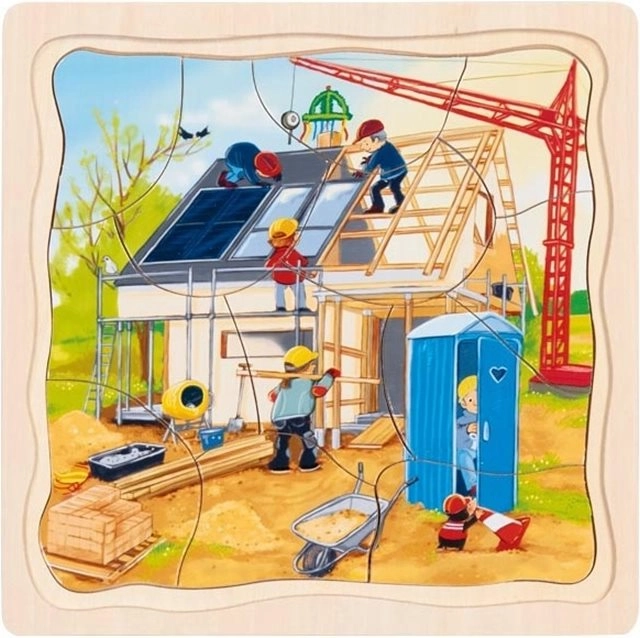 Ontdek een leuke educatieve puzzel die stap voor stap laat zien hoe een huis ontstaat. De meerlagige puzzel ontwikkelt de fijne motoriek, het logisch denken en de geduldigheid, waarbij elke laag een andere bouwfase voorstelt – van de fundering tot en met het dak.