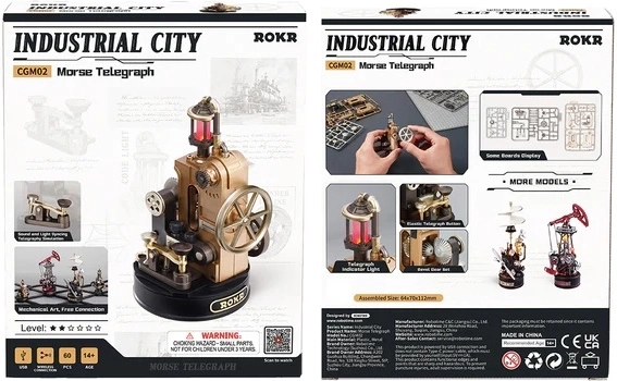 Het in elkaar zetten is intuïtief dankzij genummerde onderdelen en een duidelijke handleiding. Na het monteren krijg je niet alleen een boeiende decoratie op een voetstuk, maar ook een volledig functioneel model waarmee je berichten kunt maken en decoderen in morsecode. Het model kan worden gekoppeld aan andere bouwsets uit de Industrial City-serie om zo je eigen dynamische technische “stad” te creëren.