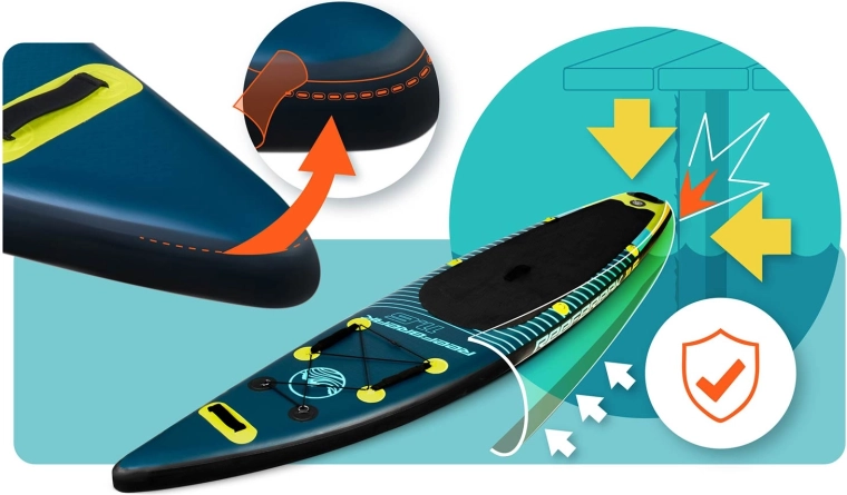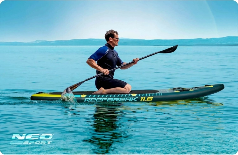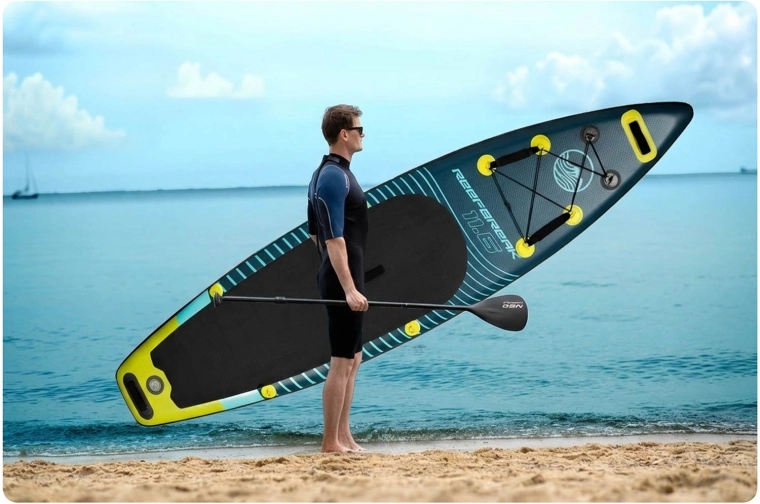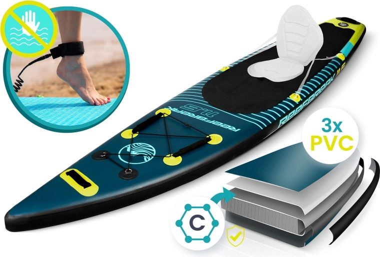 REEFBREAK 11'6 combineert zekerheid en comfort met een lichte en wendbare constructie. Drielagig PVC met Drop Stitch Light-technologie en versterkte zijkanten bieden uitstekende stijfheid, lange levensduur en UV-bestendigheid. De antislip EVA deck pad geeft een stevige stap, zelfs met natte voeten, terwijl 3 vinnen zorgen voor koersstabiliteit en gemakkelijk manoeuvreren.
