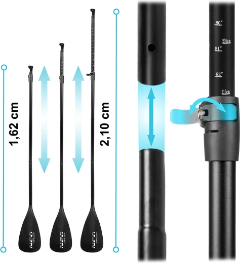 In het voorste elastische cargonet bevestig je eenvoudig een rugzak, jas of drinkfles. De verstelbare aluminium peddel (162–210 cm) vergrendelt snel met een klemsysteem en past zich aan verschillende lengtes en peddelstijlen aan. De dubbelwerkende pomp met manometer versnelt het oppompen en maakt drukcontrole altijd mogelijk. De leash met draaikoppeling raakt niet in de knoop en houdt je veilig. De hele set pak je gemakkelijk in de slijtvaste transportrugzak voor comfortabel reizen.