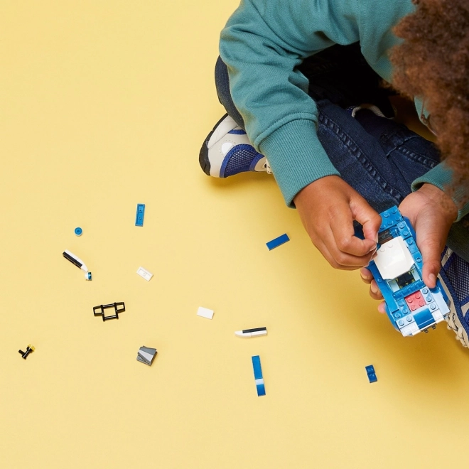 Het LEGO politieautomodel biedt plaats aan een politieagent minifiguur en realistische details voor dynamisch spel.