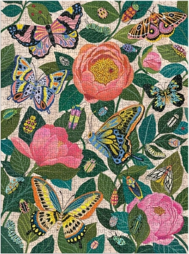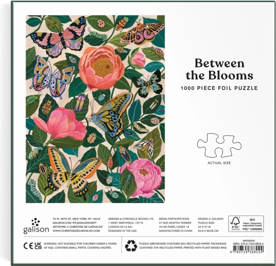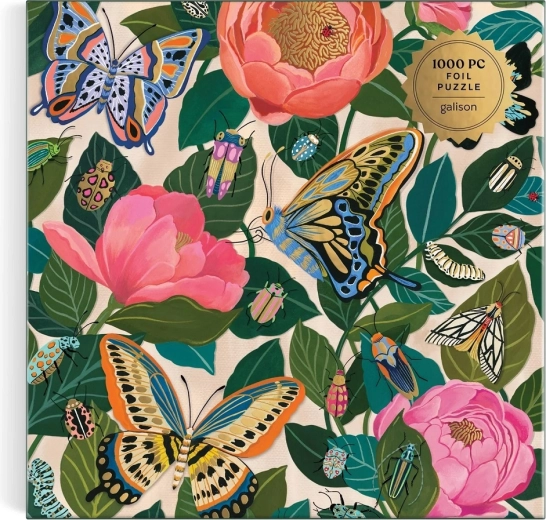 Dompel je onder in de harmonieuze wereld van bloemen en bladeren met de Galison-puzzel Tussen de bloemen. De rijke compositie vol planten, vlinders en kleine wezentjes valt op door zachte kleuren en hoogwaardige druk. Speciale folie-elementen geven het beeld glans, diepte en een uniek visueel effect waar je telkens opnieuw van zult houden.