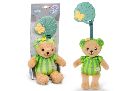 De schattige pluche teddybeertje watermeloen van BABY born verovert het hart van elke baby. Het biedt zintuiglijke elementen zoals een bijtring, rammelaar en knisperpapier, die de motorische ontwikkeling en nieuwsgierigheid stimuleren. Hij is uitzonderlijk zacht en makkelijk wasbaar. Geschikt vanaf 0+, formaat 18 cm.