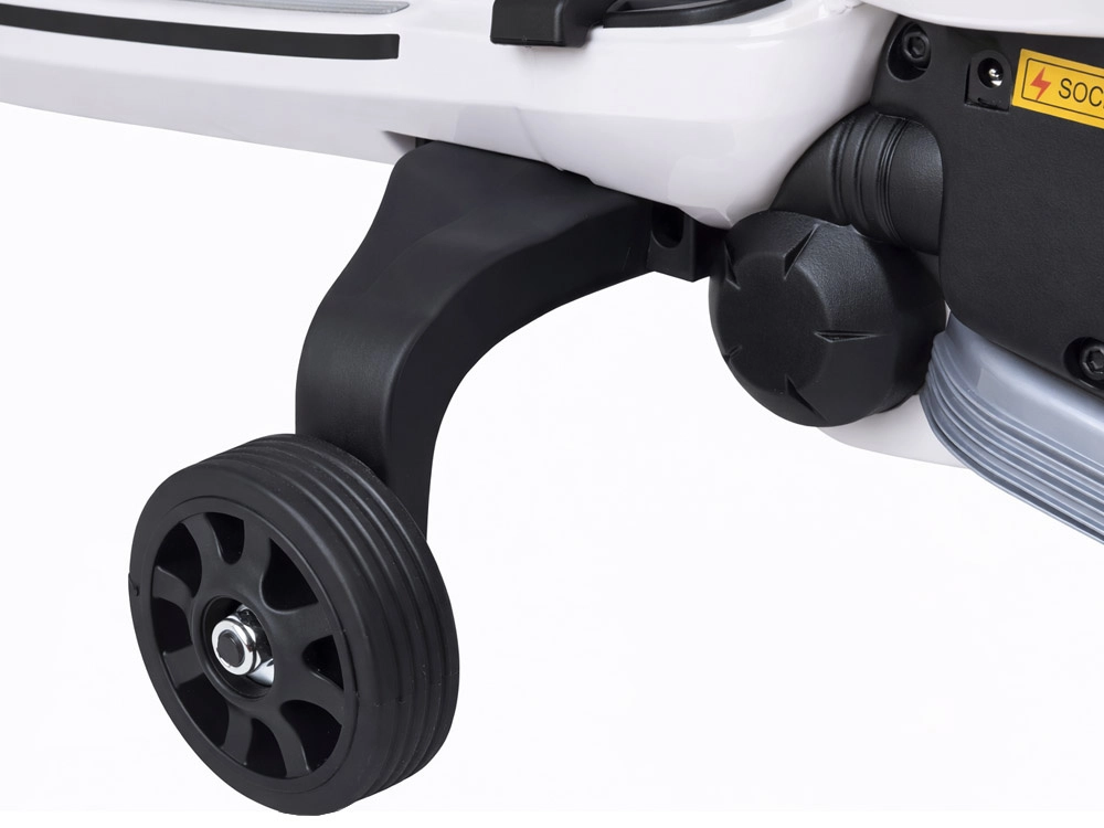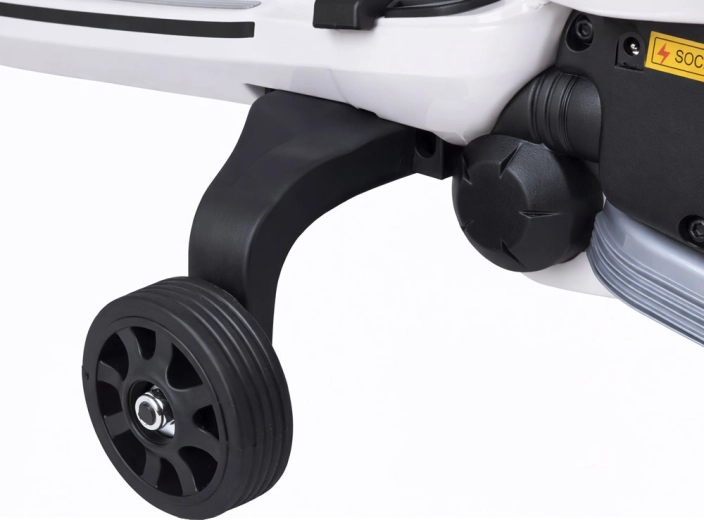 De veiligheid wordt ondersteund door een elektrische rem die wordt geactiveerd zodra je het gaspedaal loslaat, en door zijwieltjes voor stabiliteit voor beginnende rijders. Intuïtieve bediening met een schakelaar vooruit/achteruit maakt eenvoudig manoeuvreren mogelijk. Het multimediapaneel verrast met FM‑radio, voorgeprogrammeerde liedjes en de mogelijkheid om af te spelen via USB/SD of AUX.