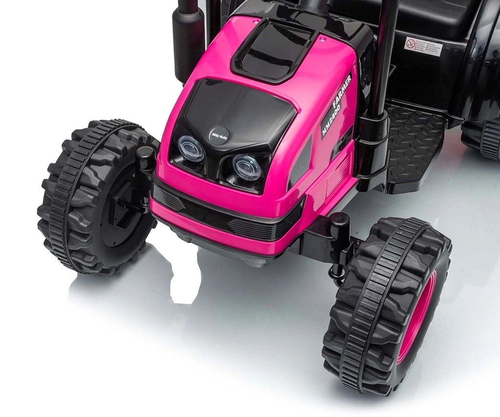 Kinderen zullen genieten van de voorste LED-lampen, het realistische motorgeluid en het uitgebreide muziekpaneel met radio, MP3, USB en Bluetooth inclusief volumeregeling. De afneembare aanhanger vergroot de speelmogelijkheden – voor het vervoeren van speelgoed, zand of “oogst” uit de tuin. Er is een gaspedaal, een schakelaar voor vooruit/achteruit/neutraal, keuze voor langzame/snelle modus en een praktische Stop-knop.