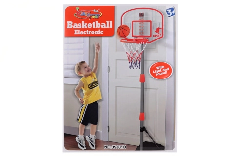 Leuke basketbalring voor kinderen met verstelbare hoogte en een elektronische teller, met en aanmoedigingsgeluiden. Perfect voor actief spel binnen en buiten, stimuleert beweging, coördinatie en gezinsplezier.