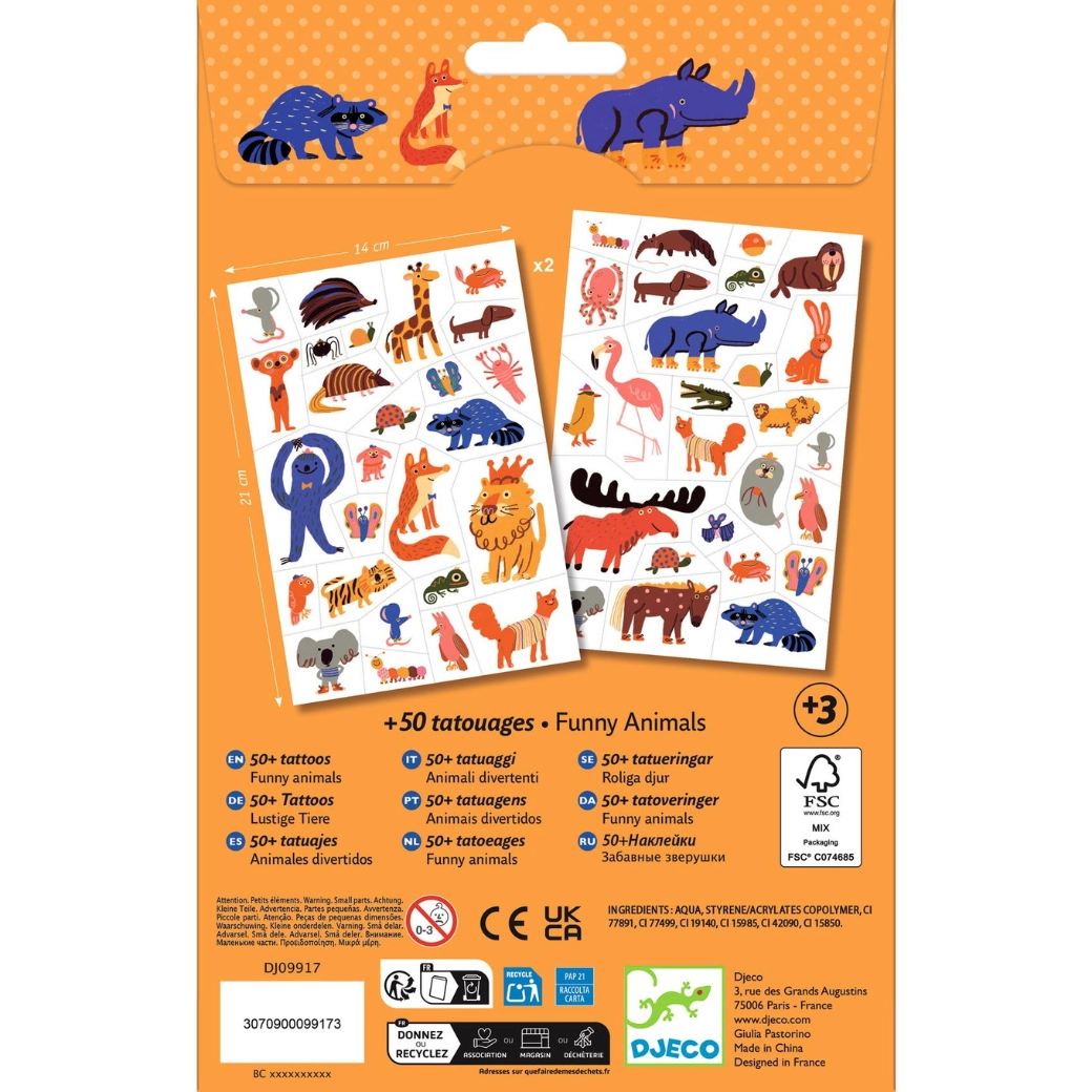Geef kinderen plezier met de kleurrijke DJECO-tatoeages. De set biedt een gevarieerde selectie dierenmotieven die eenvoudig met water worden overgebracht en op de huid net echt lijken. Ideaal voor kinderfeestjes, carnaval of als kleine beloning.
