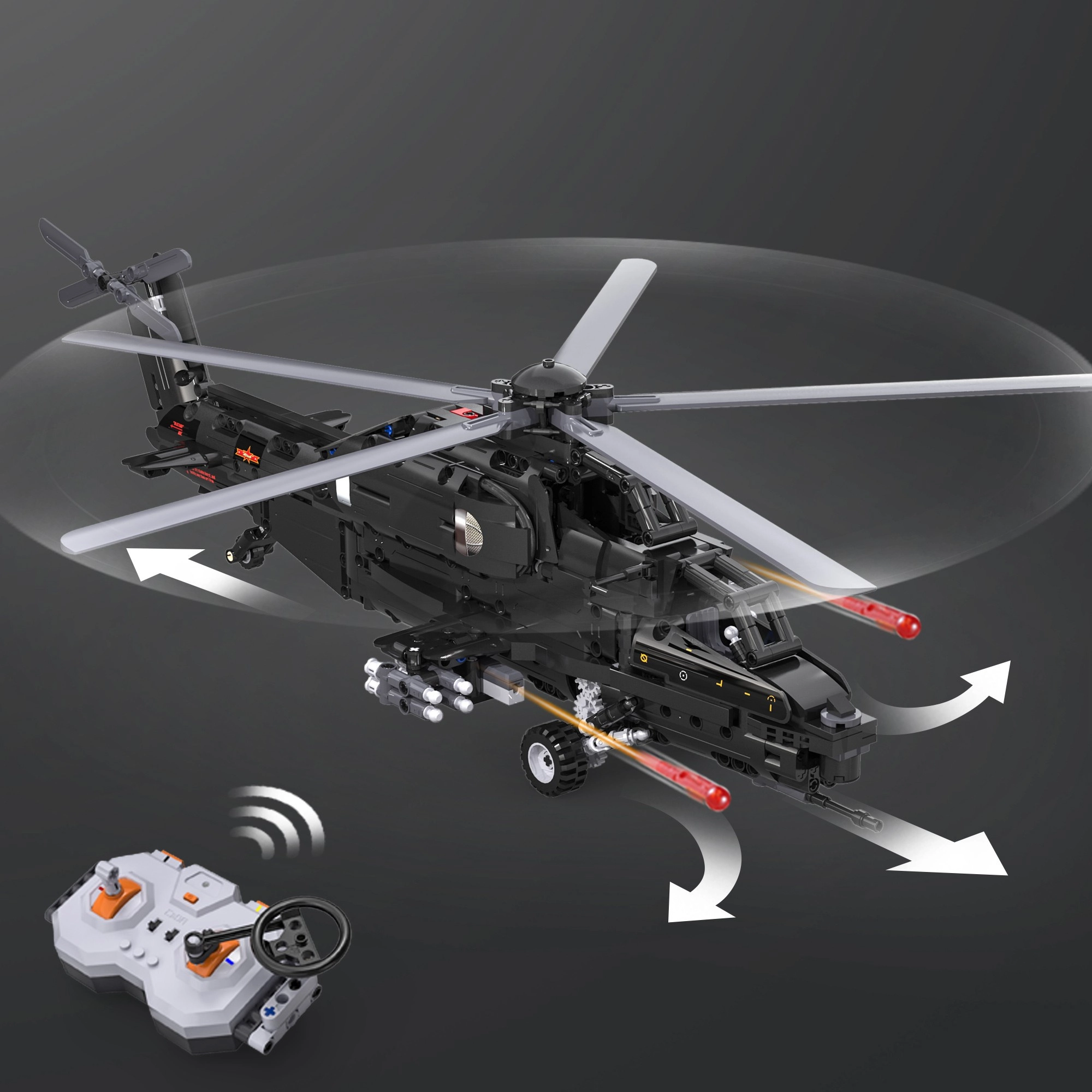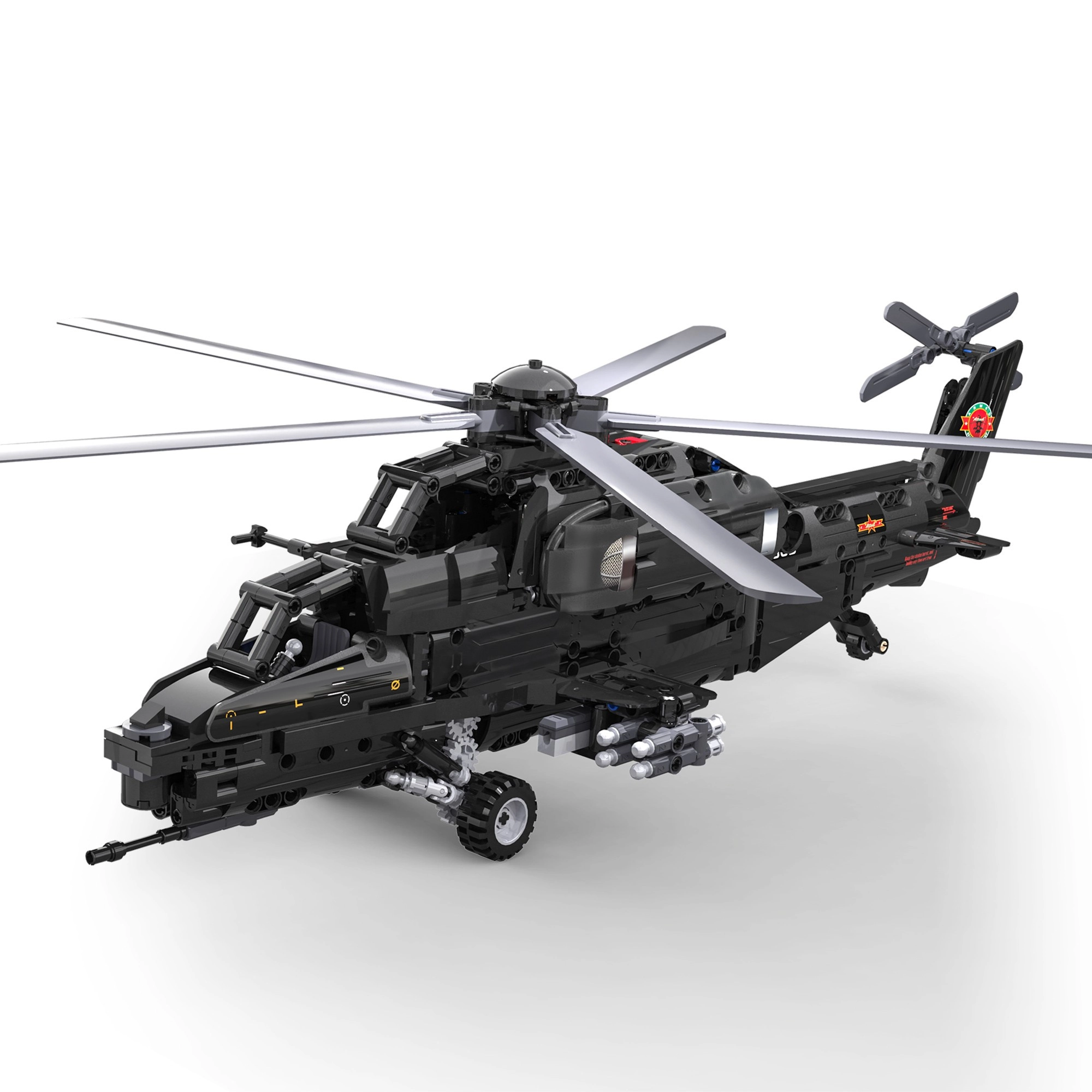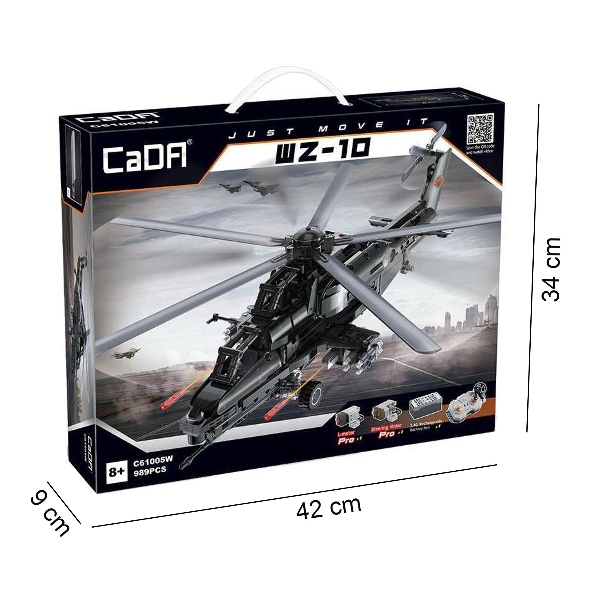 Bouw de iconische aanvalshelicopter WZ-10 met 989 onderdelen van CaDA en bedien hem op afstand. Het model biedt een werkende hoofd- en staartrotor, een openende cockpit, een functionele raketlanceerder en beweging op wieltjes. Dankzij de RC-besturing op 2,4 GHz met een bereik van meer dan 25 m geniet je van volop actie en nauwkeurig technisch bouwen.