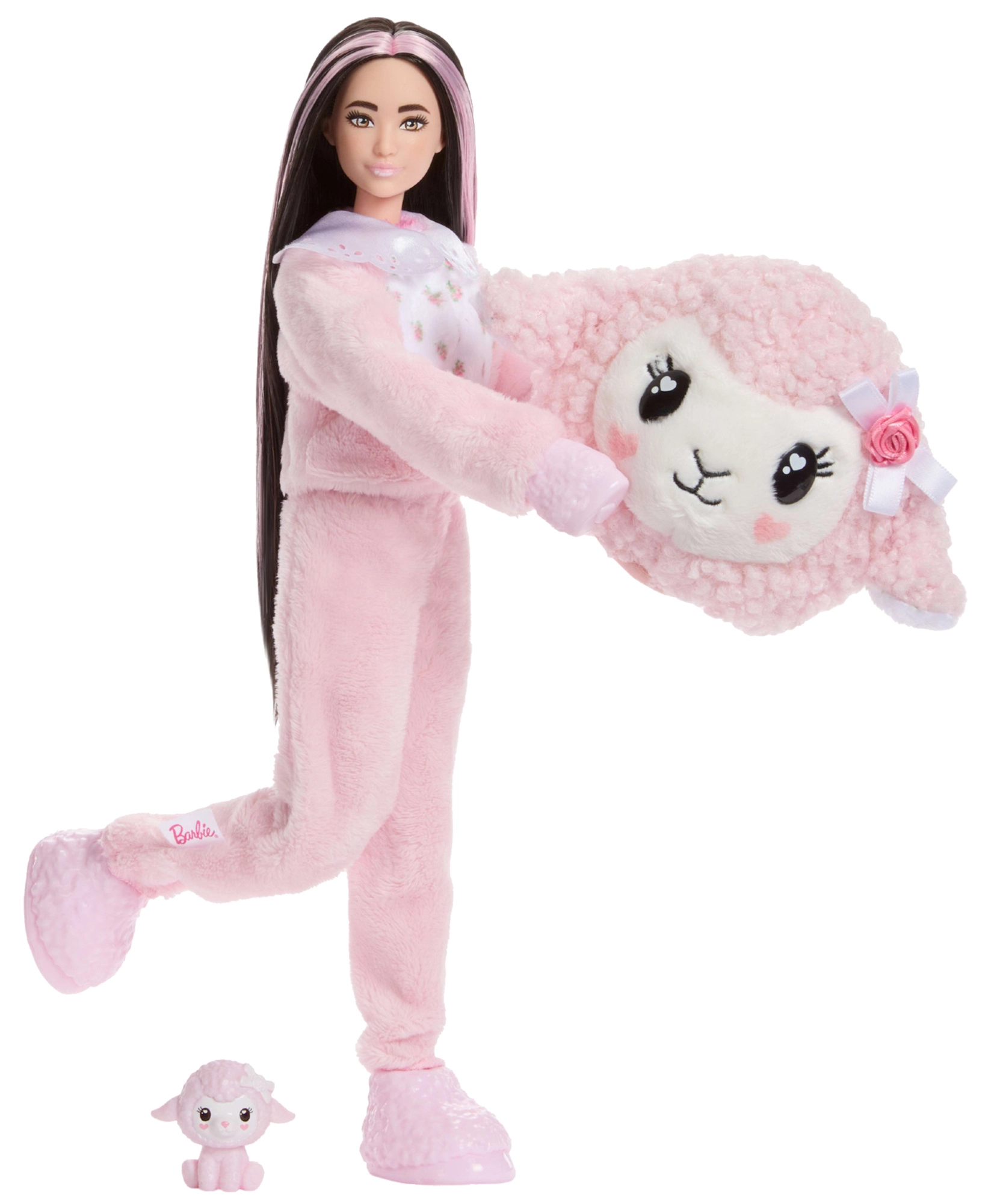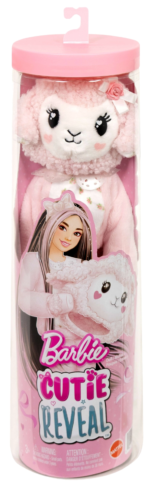 Stap in een wereld vol verrassingen en schattige stijl. De pop zit verstopt in een zacht kostuum van een roze schaap met strikjesmotief. Na het onthullen vind je een BARBIE-pop met lang haar, klaar om te kammen en om te kleden. De outfit kan binnenstebuiten worden gekeerd en verandert dan in een modieuze jas, terwijl de kop van het kostuum dient als nestje voor het minidiertje.