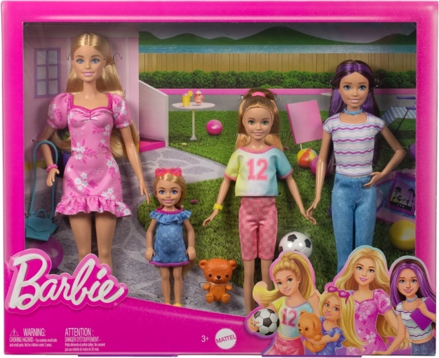 Deze kleurrijke familieset brengt vier verschillende personages met hun eigen unieke look en interesses: elegante Barbie in een roze jurk, de technisch nieuwsgierige Skipper met een tablet, de sportieve Stacie met een voetbal en de schattige Chelsea met een teddybeer. Elke pop heeft afneembare kleding en details die realistisch spelen stimuleren.