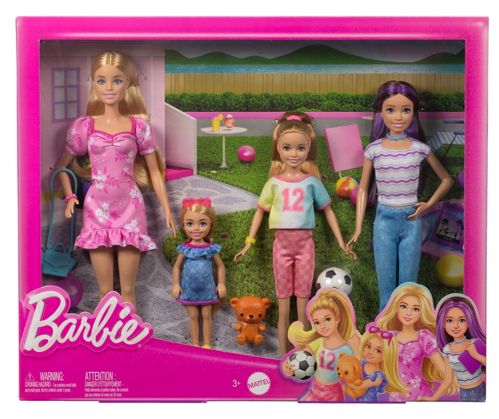 Barbie in een roze jurk, Skipper met een tablet, de sportieve Stacie met een bal en de speelse Chelsea met een teddybeer – vier verschillende karakters voor eindeloze scenario’s.