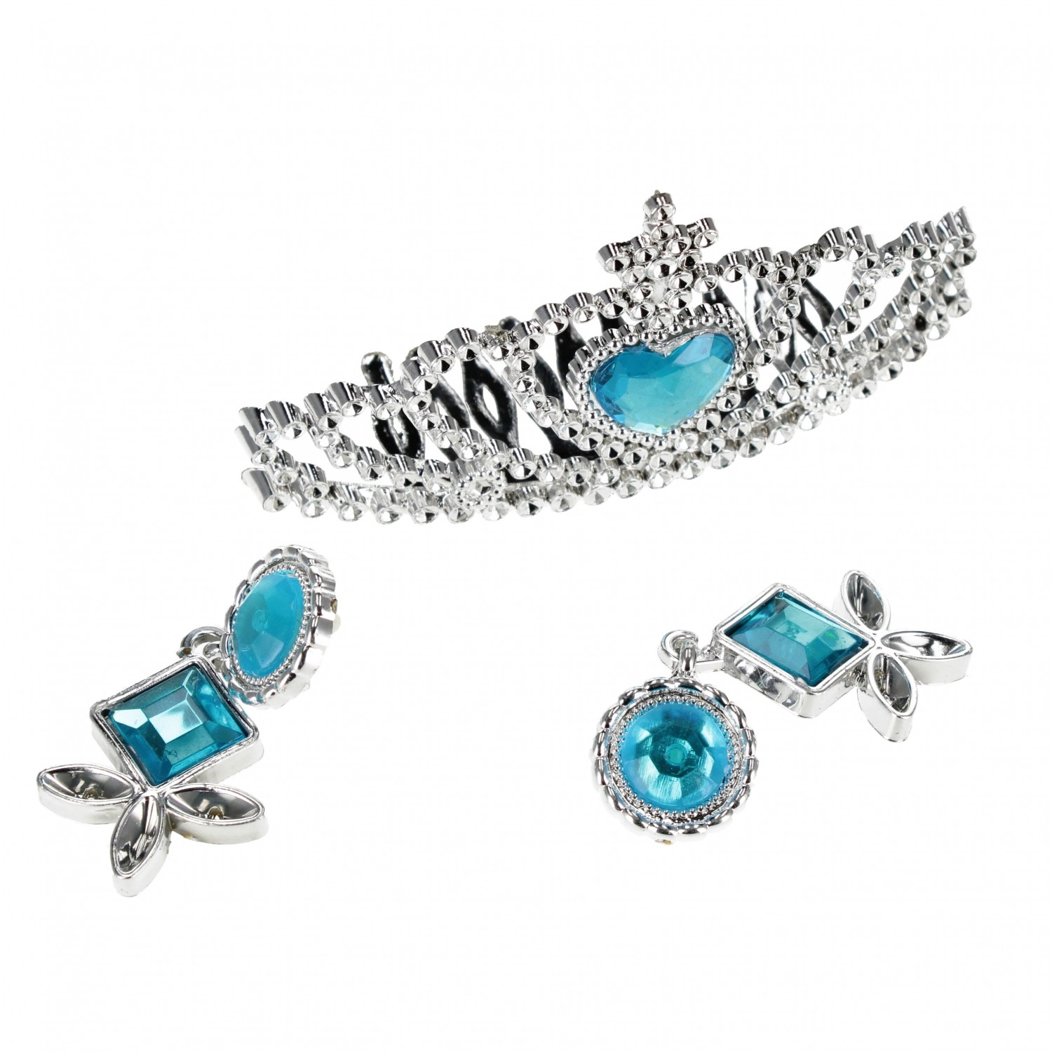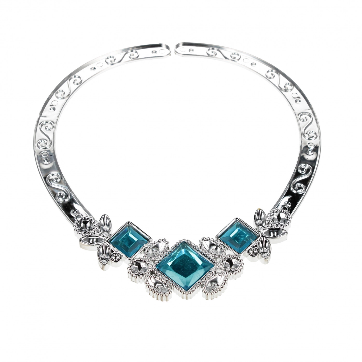 Ornamentale ketting met drie blauwe steentjes vult het diadeem prachtig aan en maakt de prinsessenlook compleet.
