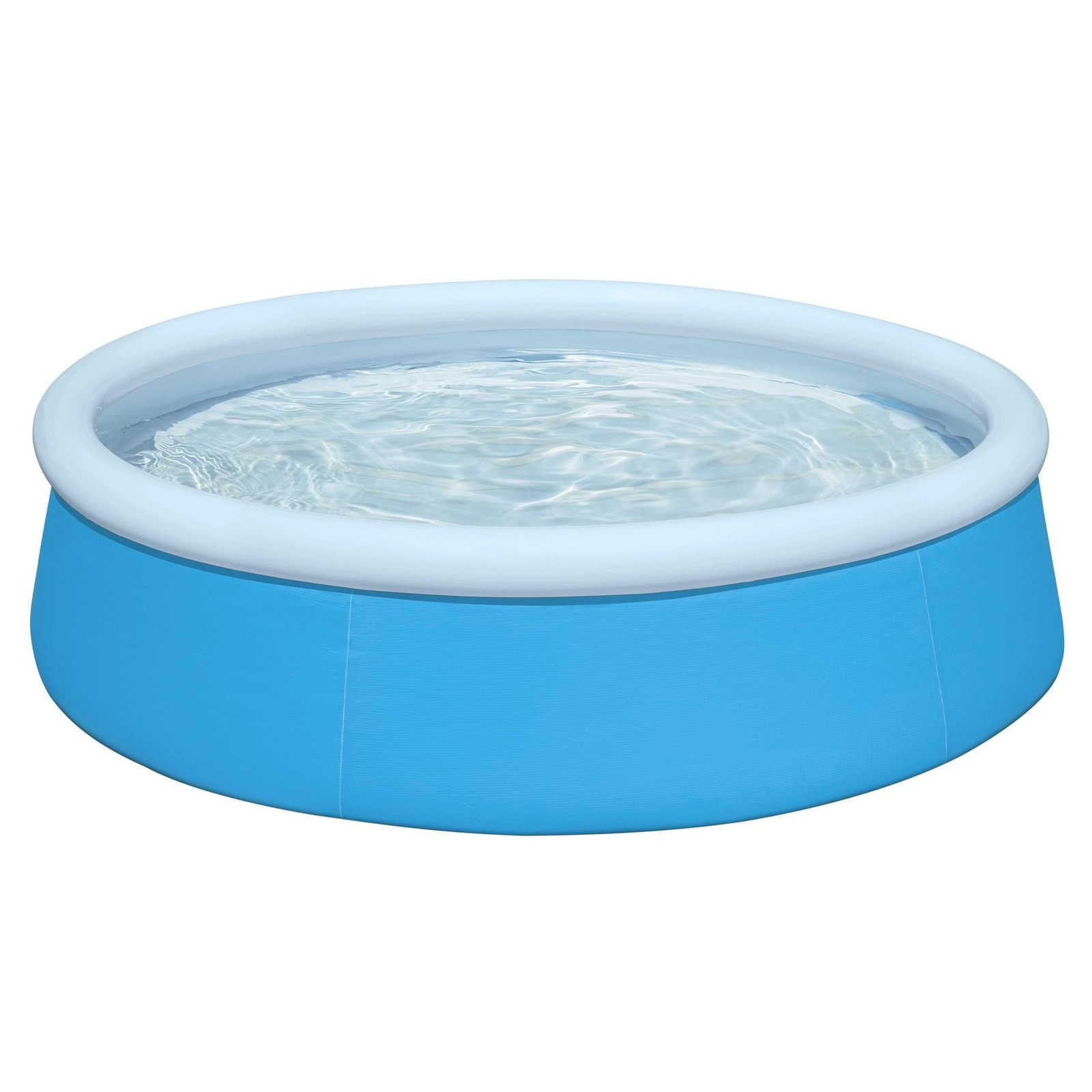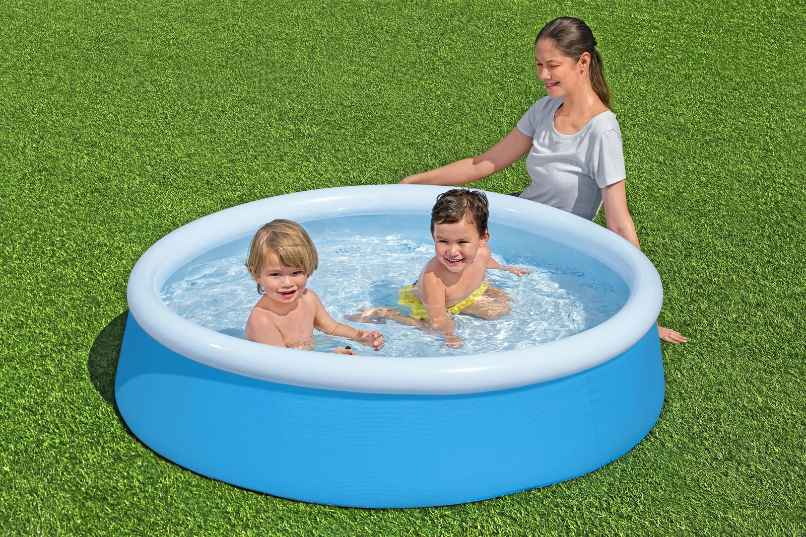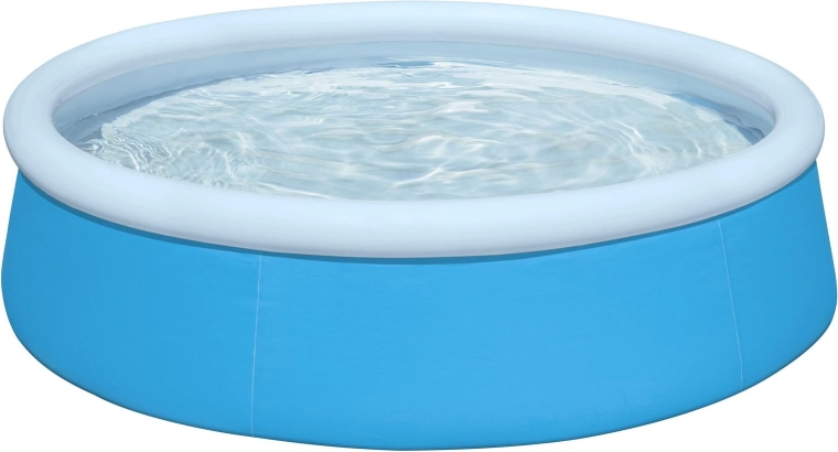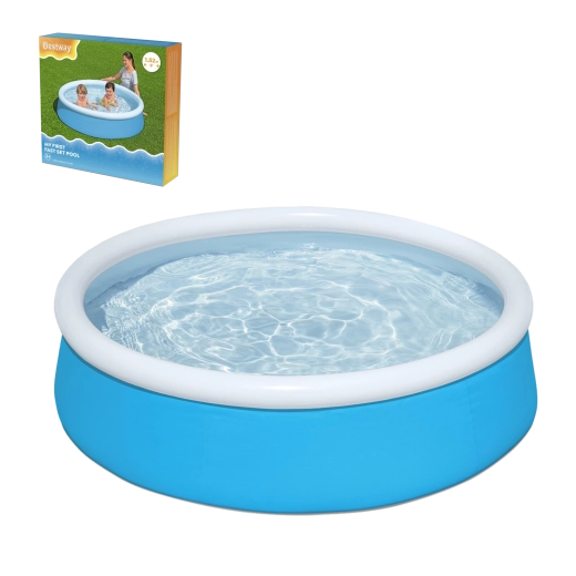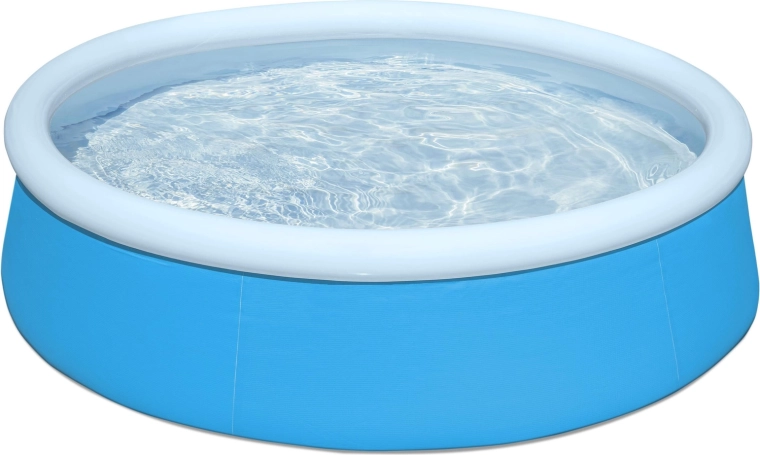 Dit ronde tuinzwembad is een ideale eerste keuze voor kleine kinderen. Dankzij de opblaasbare bovenring komen de wanden tijdens het vullen vanzelf omhoog en is het bad binnen enkele minuten klaar. De compacte afmetingen zorgen voor veilig speelplezier en maken plaatsing in zelfs een kleine tuin eenvoudig.