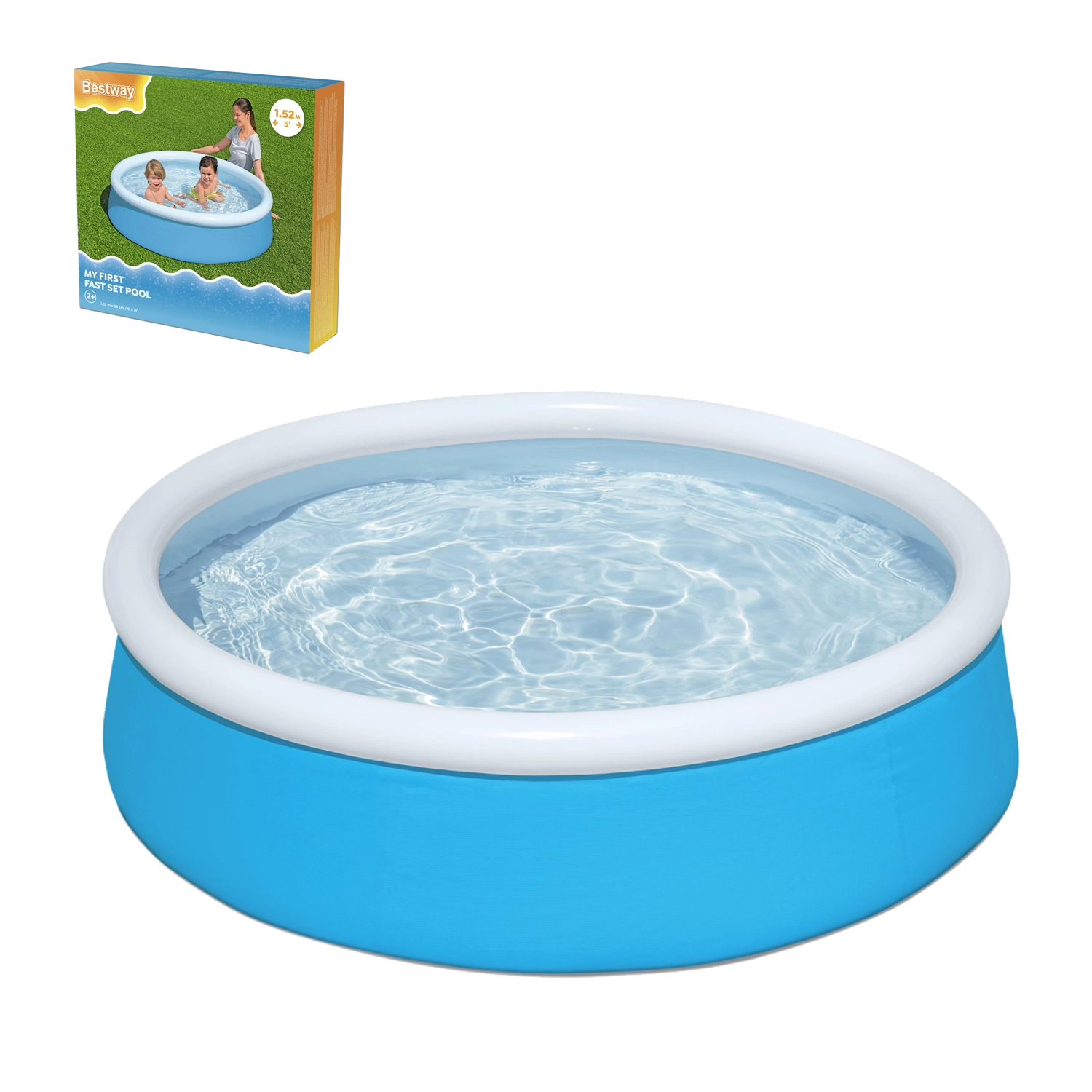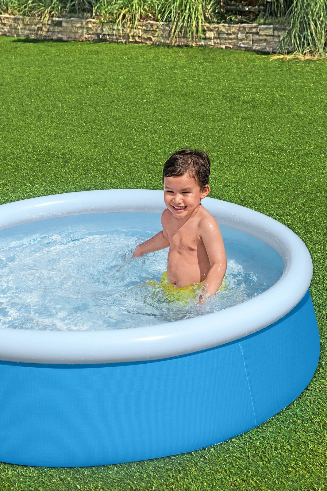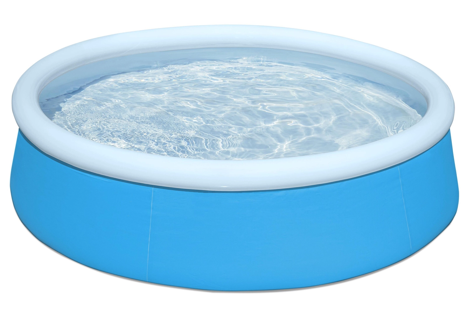 Dit ronde tuinzwembad is een ideale eerste keuze voor kleine kinderen. Dankzij de opblaasbare bovenring komen de wanden tijdens het vullen vanzelf omhoog en is het bad binnen enkele minuten klaar. De compacte afmetingen zorgen voor veilig speelplezier en maken plaatsing in zelfs een kleine tuin eenvoudig.