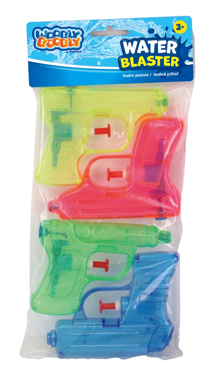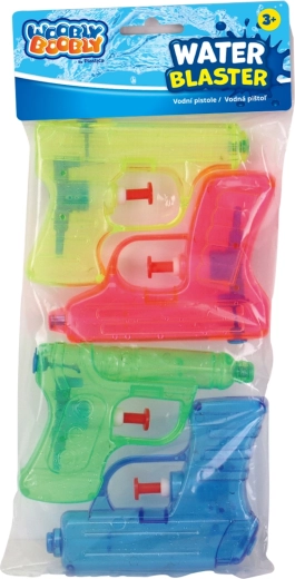 Organiseer onvergetelijke watergevechten met een praktische set van vier transparante waterpistolen in verschillende kleuren. Dankzij de compacte afmetingen liggen de pistolen prettig in de hand, zelfs bij de kleinsten, hebben ze een eenvoudig handmatig trekkermechanisme en zijn ze in een oogwenk klaar voor actie.