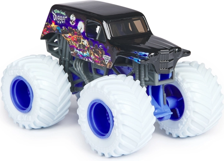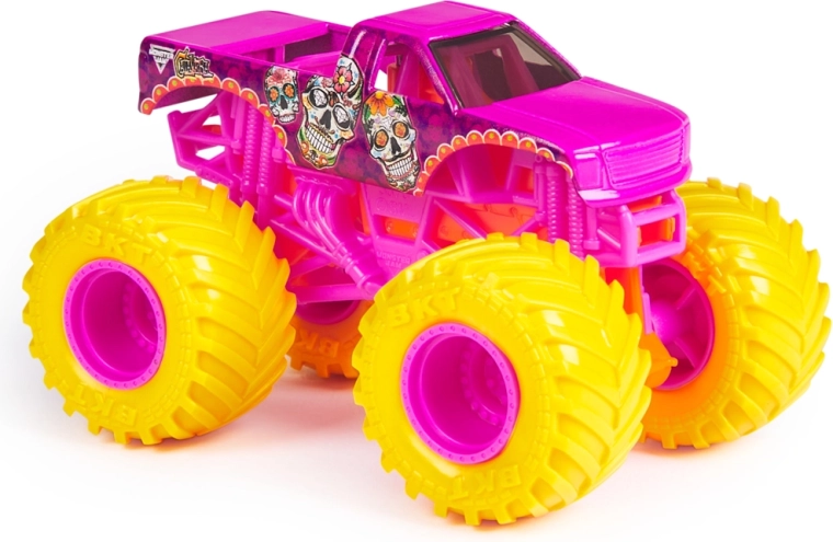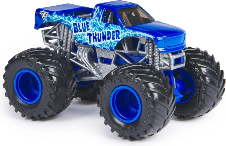 Het assortiment biedt een willekeurige selectie van favoriete kampioenen: El Toro Loco, Grave Digger, Megalodon, Max-D, Blue Thunder, Alien Invasion, Son-Uva Digger, Northern Nightmare en meer. Elk stuk is blisterverpakt en klaar om je collectie en speelgarage te verrijken.