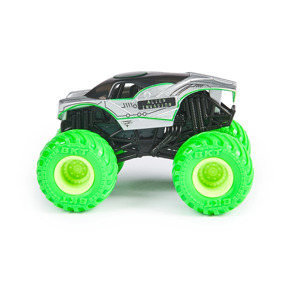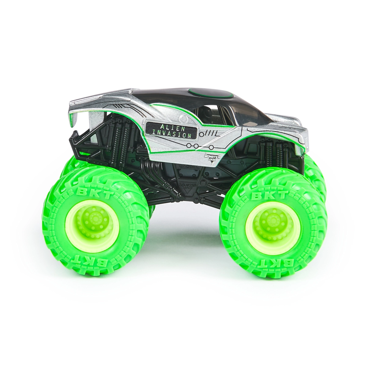 Neongroene BKT-banden en een zilver-zwart carrosserieontwerp vallen direct op. Klaar voor gedurfde sprongen en grenzeloze fantasie.