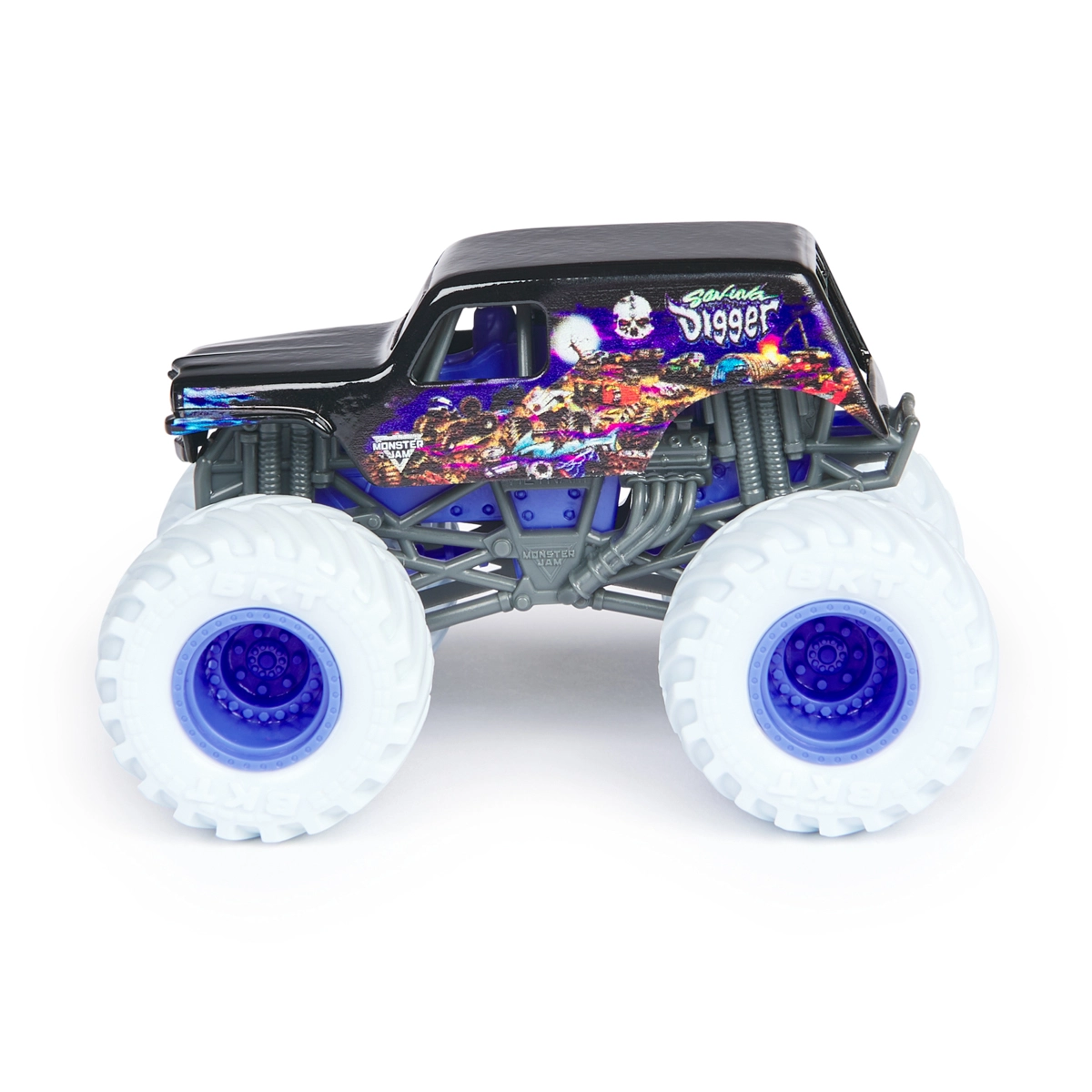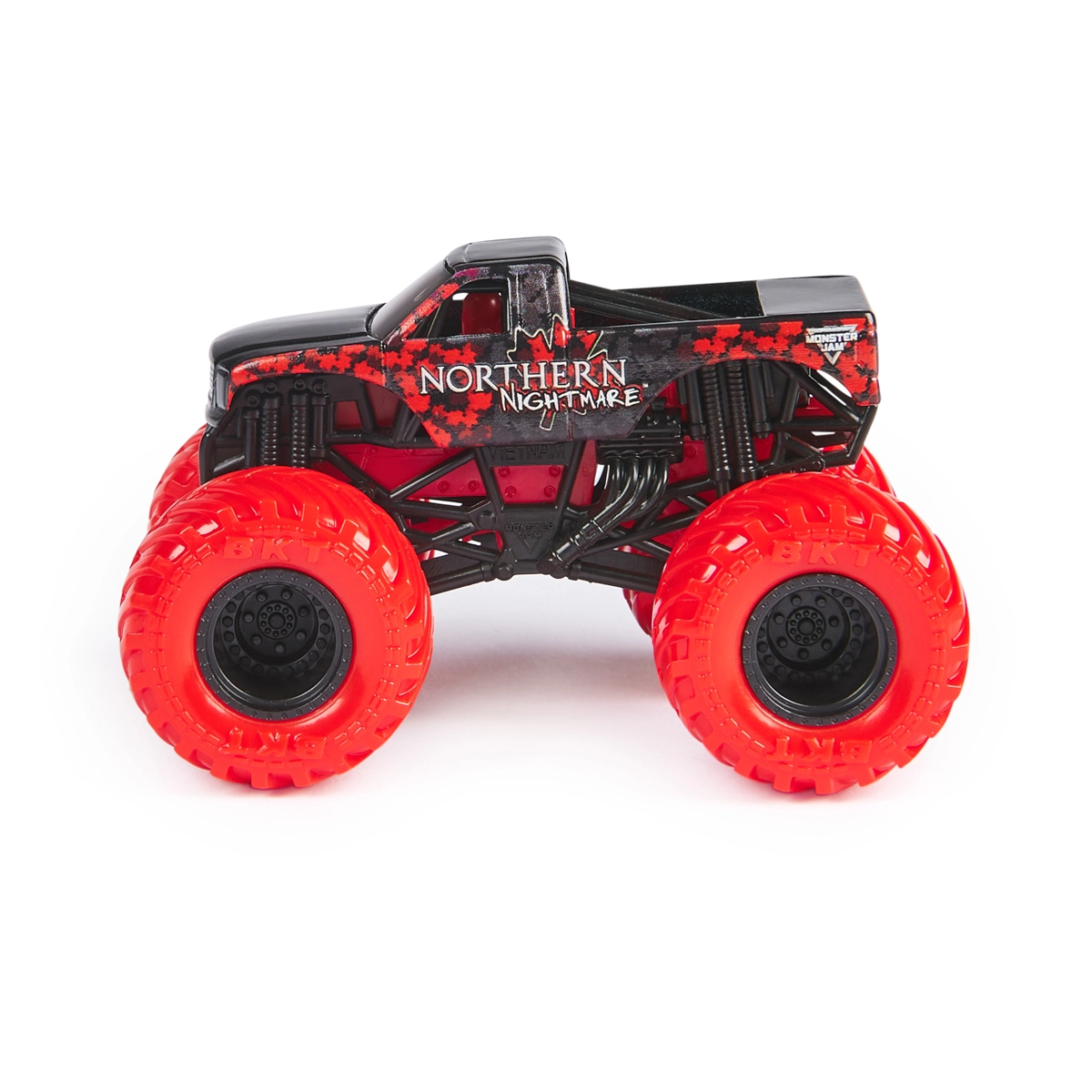 Officiële Monster Jam-modellen 1:64 bieden realistische details van echte racespecials in een handzaam “zakformaat”. Elke truck heeft een authentiek chassis, opvallende lak, gelicentieerde BKT-banden en is klaar voor jouw thuisarena’s, sprongen en stunts.