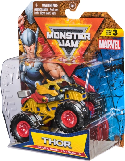 Stap in de wereld van stuntwerk en compromisloze gevechten met het metalen Monster Jam-model op schaal 1:64. Het autootje imponeert met een gedetailleerd design, duurzame constructie en iconische MARVEL-motieven die fans en verzamelaars zullen waarderen.