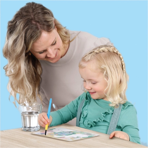 Schilderen met water – Safari biedt kinderen plezierig en schoon knutselen zonder ook maar een druppel extra verf. Vul simpelweg de meegeleverde kwast met water en onthul met elke haal de verborgen kleuren en details van safari-dieren. Na het drogen keren de pagina’s terug naar hun oorspronkelijke staat, zodat kinderen hun favoriete activiteit keer op keer kunnen herhalen.
