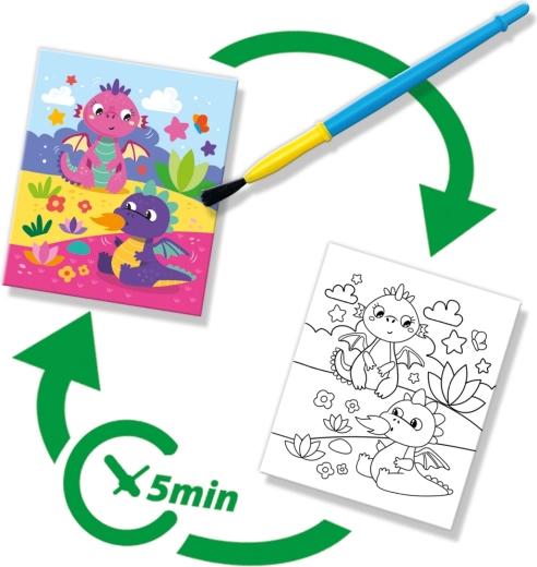 Ideaal voor onderweg, in een restaurant en thuis. De waterpenseel met een fijne punt zorgt voor precieze streken die de fijne motoriek, concentratie en creatieve expressie bevorderen. Fantasierijke motieven vermaken kinderen en stimuleren hun verbeeldingskracht op een natuurlijke manier.