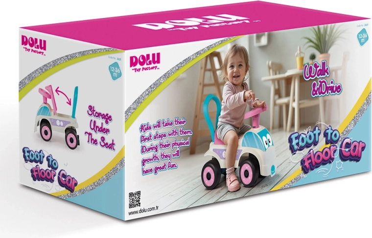 De lichte maar stevige kunststofconstructie maakt hanteren eenvoudig, de brede wielen zorgen voor stabiliteit en de claxon verhoogt het speelplezier. De praktische opbergruimte onder het zitje biedt plek aan kleine speeltjes en vondsten van uitstapjes. De loopauto is een geweldige maatje voor dagelijks actief spelen en het ontwikkelen van motorische vaardigheden.