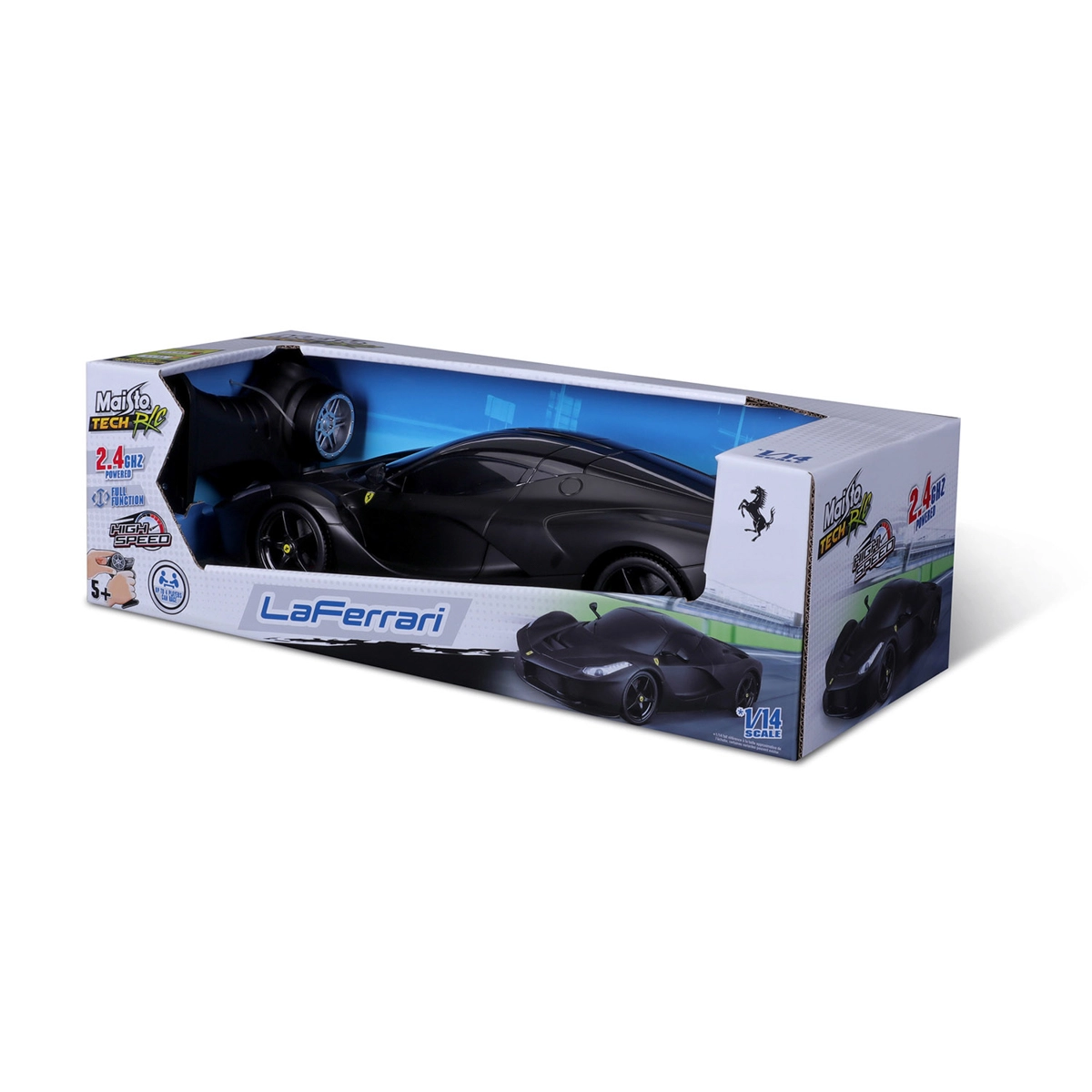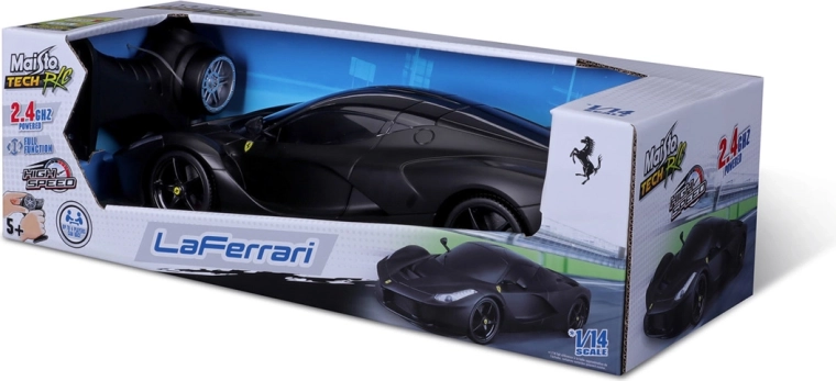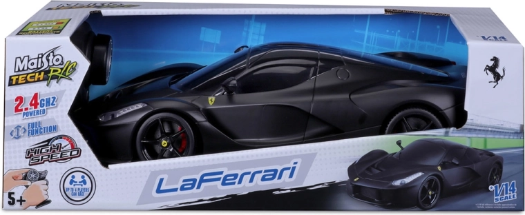 Stijlvol model MAISTO RC LaFerrari 1:14 in een elegante zwarte kleur biedt een realistische rijervaring. Beschikt over volledig functionele besturing, koplampen en achterlichten, een pistoolzender met 2,4 GHz voor gelijktijdig rijden met tot wel vier modellen en een bereik tot 35 m. Ideaal voor kleine en grote supercar-fans vanaf 5 jaar.